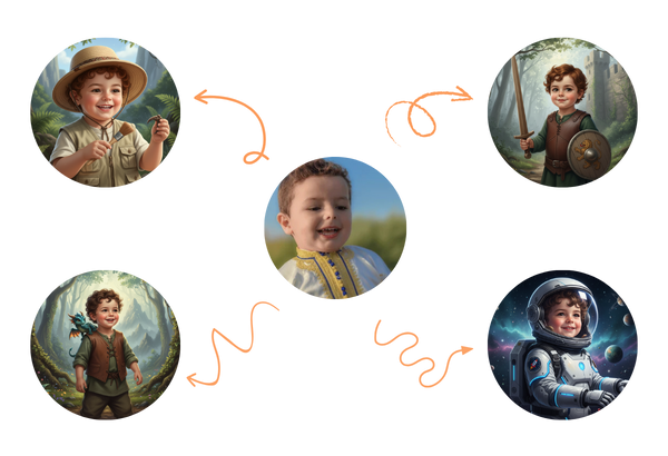 - La création complète de l’histoire et des illustrations basées sur votre enfant